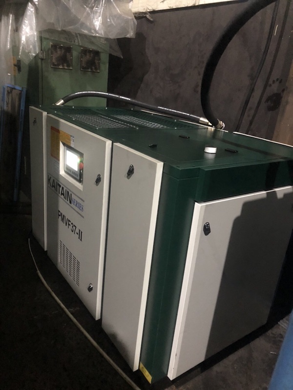 現在的情(qing)況是,一台(tái)滿負荷,開(kāi)小的又不(bú)夠,産能又(yòu)要擴大。決(jué)定要增加(jia)一台空壓(ya)機,比較了(le)好多品牌(pái)之後選擇(ze)了我們杭(háng)州開山空(kōng)壓機銷售(shòu)服務商。今(jin)天交付使(shǐ)用。
